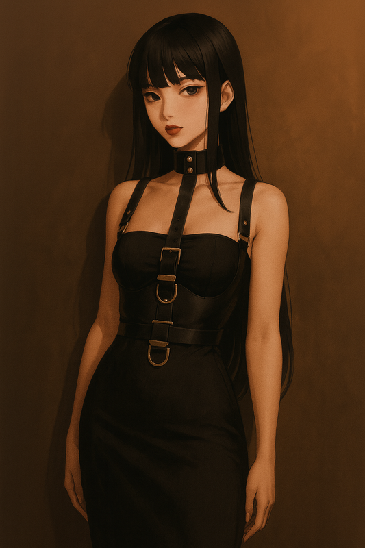 Този модел е уникално съчетание между корсет, тиранти и чокър/колие, което създава смела и стилна комбинация.